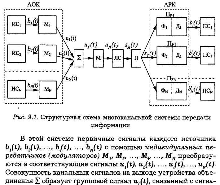 Общий принцип построения системы многоканальной передачи поясняется с помощью структурной схемы рис. 9.1.
