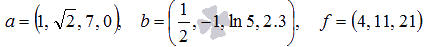 Векторы обозначаются строчными латинскими буквами, например, a, b, c и т.п., координаты вектора указываются в скобках.