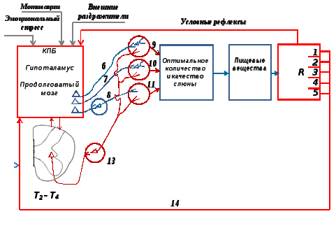 Схема функциональной системы регуляции слюноотделения, оптимального для формирования пищевого комка.