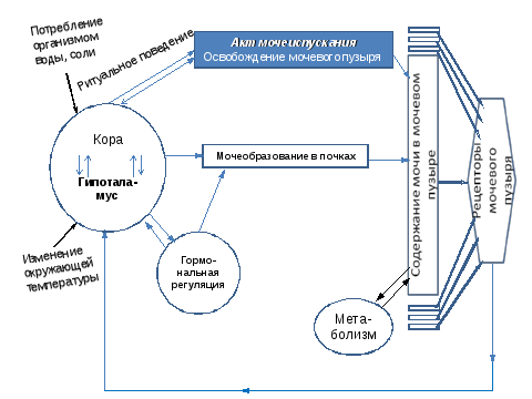 - •Информационный блок Cхема функциональной системы, обеспечивающей выделение мочи из организма.