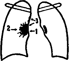 Рис. 43. Центральные рак правого лёгкого с экзобронхиальным ростом.