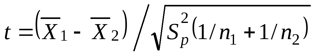 Из теории известно, что при условии равенства дисперсий вычисляемая величина Spесть несмещенная оценка дисперсии, и статистикаtтакже имеет распределение Стьюдента.