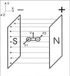 При движении потока молекул воды в магнитном поле перпендикулярно его силовым линиям, вдоль оси Y (см. вектор V), будет возникать момент сил F1, F2 (сила Лоренса), пытающихся развернуть молекулу в горизонтальной плоскости (рисунок 10.6).