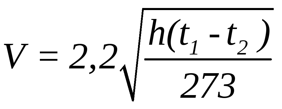 Розраховуємо швидкість V (м/с) повітряного потоку у витяжній трубі, каналі по формулі: