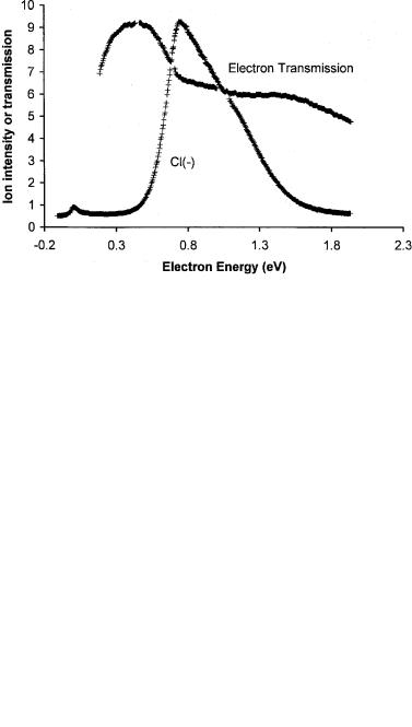 Figure 6.14 Electron impact spectra for Cl( ) from C6H5Cl and simultaneous electron transmission spectra versus the electron energy, replotted from [69].