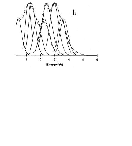 Figure 7.16 Electron impact spectrum calculated from the current ‘‘best’’ Morse potential energy curves for I2 and I2( ) shown in Figure 7.15. The data are taken from [19].