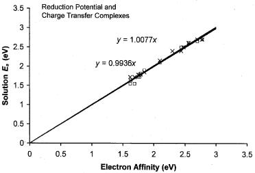 metal beam and thermal charge transfer experiments. The leveling effect of the number of substituents was noted. In addition, a brief look at the effect of substituents on electron affinities obtained from half-wave reduction potentials was considered. This procedure will be extended to additional molecules in Chapter 10.