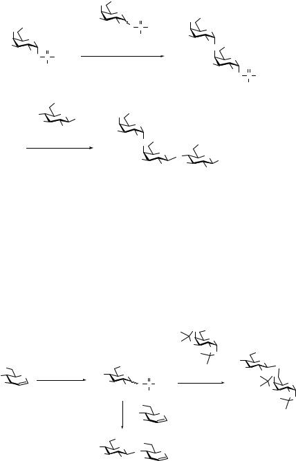 β-glycoside formation on activation at low temperatures (Scheme 6.17).53 A series of glucosyl and galactosyl phosphoroamidates lacking a C2 a participating group were coupled to primary and secondary acceptors in excellent yield and with α:β-selectivities of ≤3:97 on activation with stoichiometric TMSOTf at –78°C in propionitrile. 2-O-Benzoyl-protected phosphoroamidate donors yielded exclusively β-glycosides. Interestingly, this anomeric leaving group was also β-selectively activated by BF3 Et2O in dichloromethane at –10°C, at conditions compatible with the corresponding glycosyl diphenylphosphinimidate donors. Thus, oligosaccharide syntheses using different kinds of phosphorus-based leaving groups as well as glycosylation of compounds insoluble at very low temperatures in propionitrile, such as steroidal alcohols were enabled.