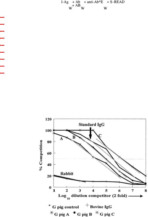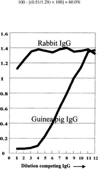 1.Note that as you dilute out the homologous competitor (the guinea pig Ig), the competition reduces.