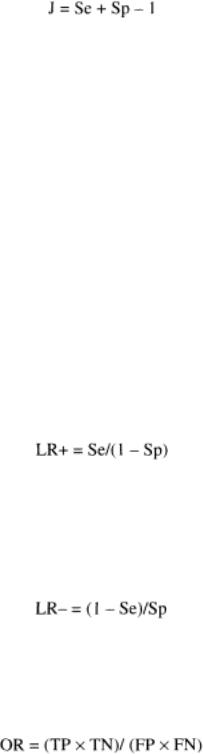 Likelihood ratios (LRs) are important measures of accuracy that link estimations of preand posttest accuracy. They express the change in likelihood of disease based on information gathered before and after making tests. The degree of change given a positive result (LR+) and given a negative result (LR¨C) depends on the SDe and Sp of the test.