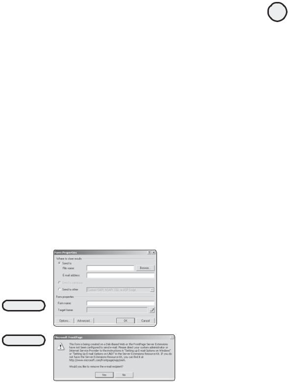 4.What is this rather detailed error message, and why are you receiving it? In order for FrontPage to automatically generate e-mail, the e-mail server needs to be properly configured. So, for this section, you’ll have to take my word that this feature really does work(!), even though you might not be able to see a live demonstration on your own machine.