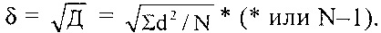 Стандартное отклонение (δ). Из-за возведения в квадрат отдельных отклонений d при вычислении дисперсии полученная величина оказывается далекой от первоначальных отклонений и потому не дает о них наглядного представления. Чтобы этого избежать и получить характеристику, сопоставимую со средним отклонением, проделывают обратную математическую операцию — из дисперсии извлекают квадратный корень. Его положительное значение и принимается за меру изменчивости, именуемую среднеквадратическим или стандартным отклонением: