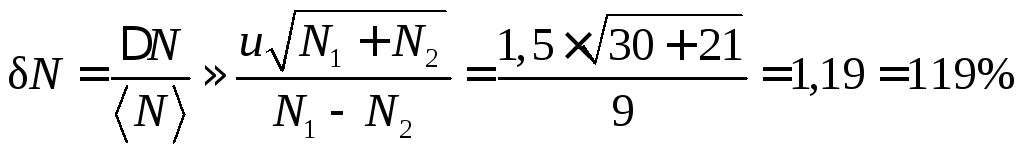 Таким образом, выражение для относительной погрешности случайной величины, распределенной по закону Пуассона, принимает вид