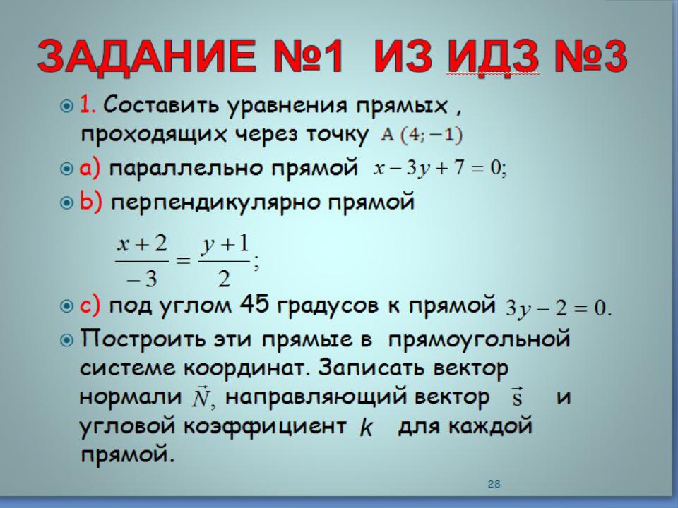 - •Для нахождения уравнения прямой будем использовать уравнение прямой, проходящей через заданную точку перпендикулярно