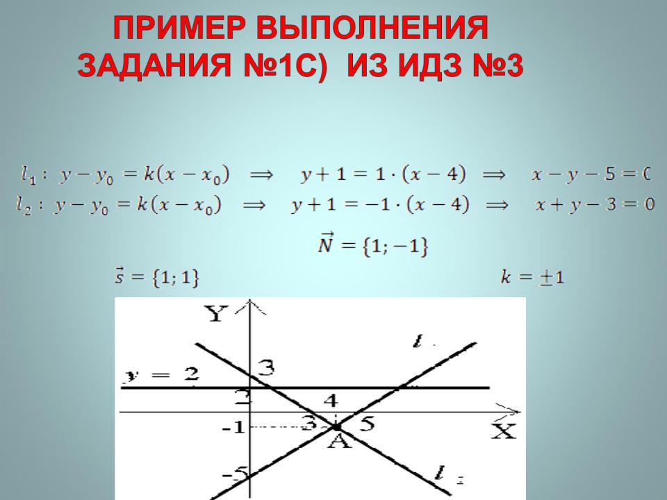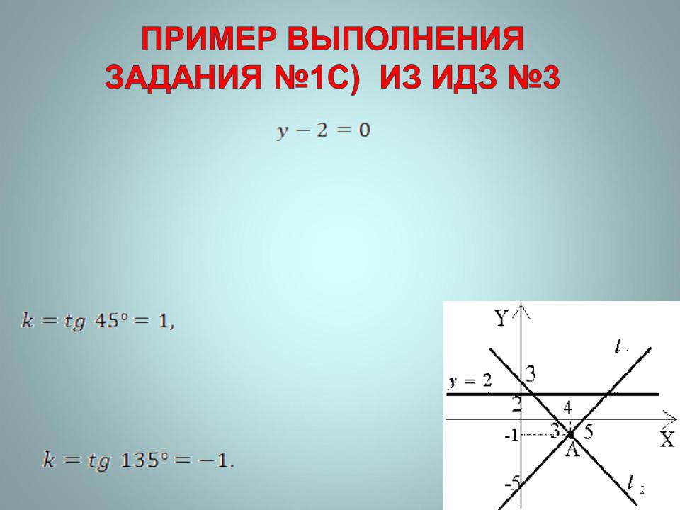 1c). Данная прямая является горизонтальной и составляет осью OX угол 0 градусов. Под углом 45 градусов к ней через