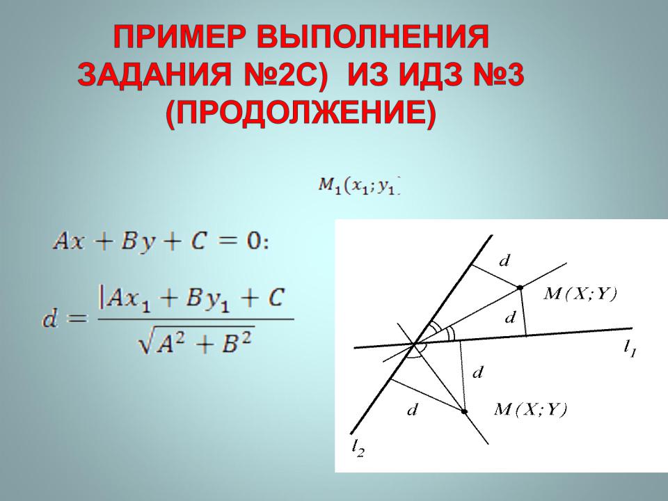 - •а также формулой для вычисления расстояния от точки до прямой