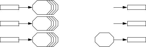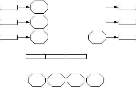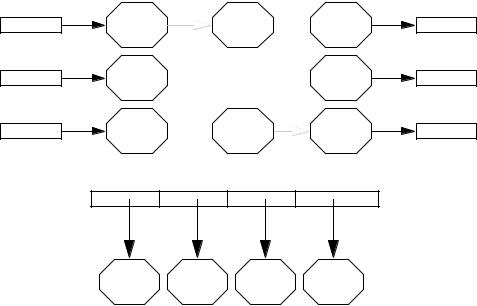 Now assume there is some mechanism by which a task can temporarily claim a serial input and output port for a period of time so that no other task can use that port at the same time. Then the number of tasks involved could be reduced as shown in Figure 3.6.