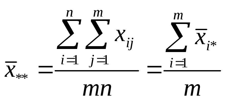 Пусть усреднение по какому-либо индексу будет обозначено через «звездочку» (или точкой) вместо индекса, тогда средний показатель качества изделий i-й партии, или групповая средняя для i-го уровня фактора примет вид: