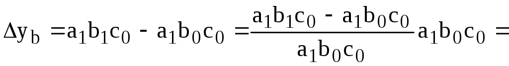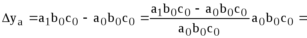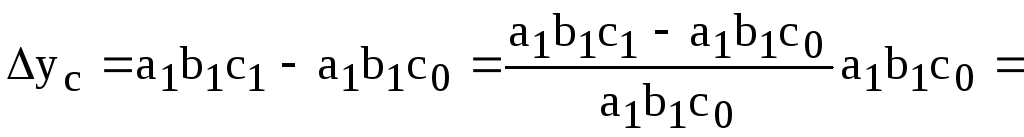 Абсолютное изменение результативного показателя за счет факторов a, b, c: