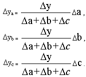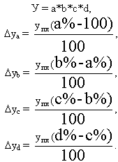 Lg (y1 /y0) = lg (a1 /a0) + lg (b1 /b0) + lg (c1 /c0),