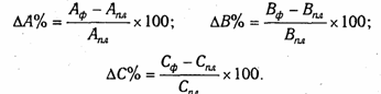 Δb=Bф –Bпл и т.д.
