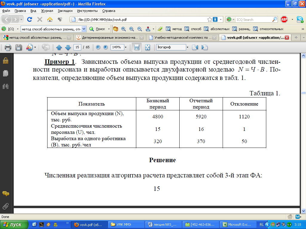 .docСпособ абсолютных разниц является одной из модификаций метода элимирования. Этот способ является техническим упрощением метода цепных подстановок.
