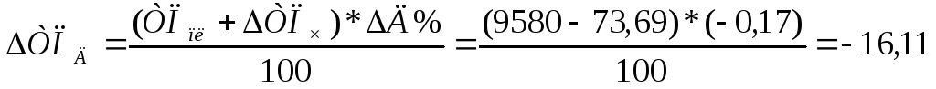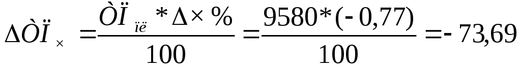 2) Изменение обобщающего показателя: ТП (Ч)=(-18)*236*8,0*2,168=-73677,3
