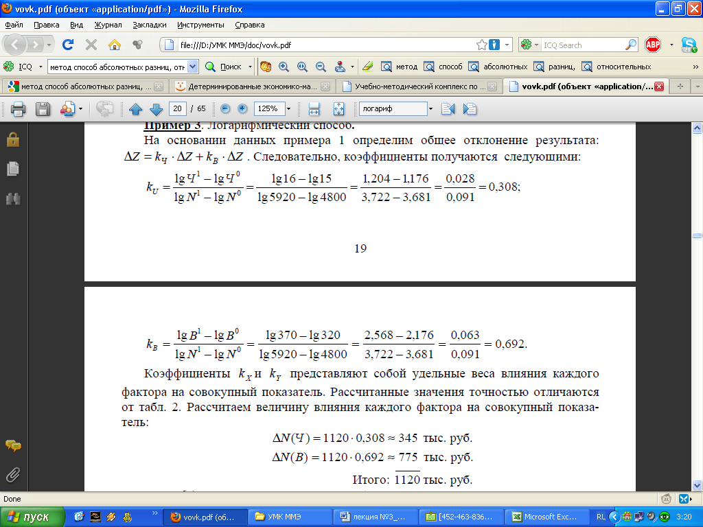 В отличие от интегрального метода при логарифмировании используются не абсолютные приросты показателей, а индексы их роста (снижения).