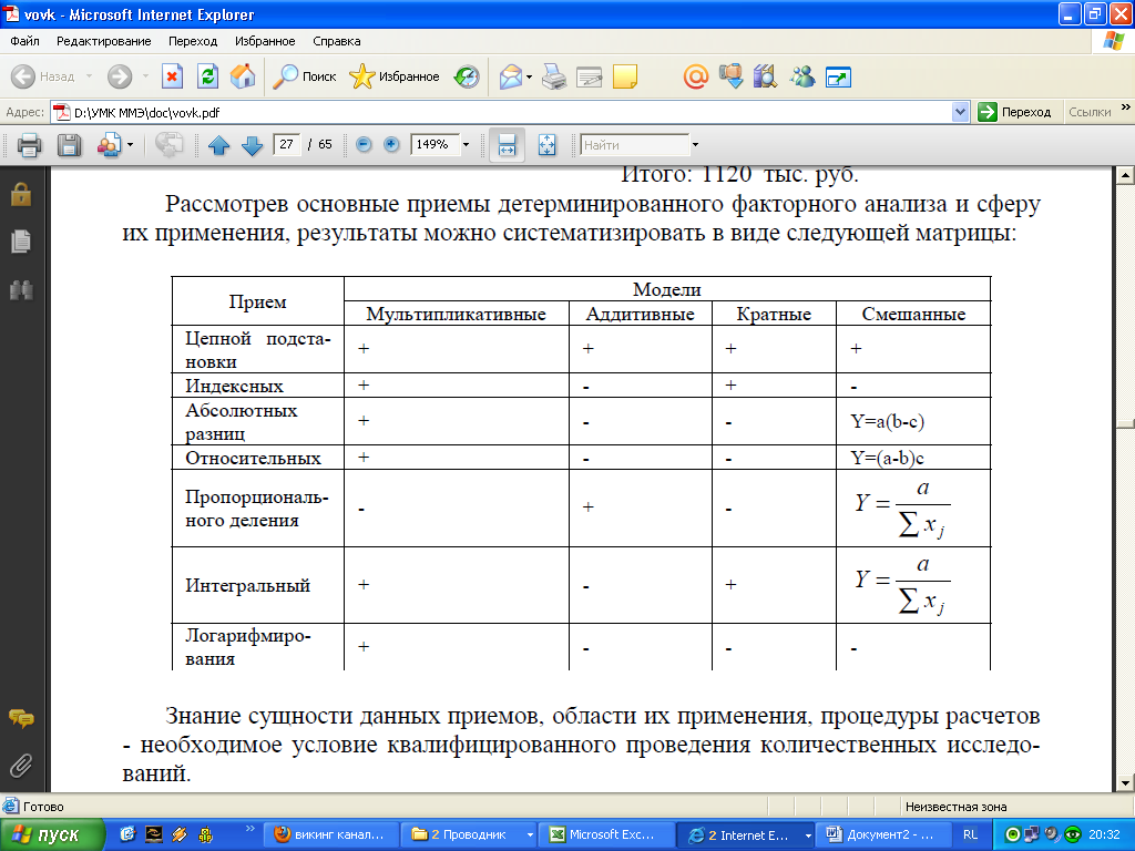Провести анализ влияния на объем товарной продукции количества работников и их выработки для данной мультипликативной модели всеми возможными способами.