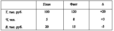 Задача 1. Имеются данные о численности работающих (Ч) на торговом предприятии и выручке на одного работающего (В) за сентябрь. Плановые и фактические значения показателя товарооборота (Т) представлены в таблице. Провести анализ влияния на объем товарооборота количества работников и выручки на одного работающего для данной мультипликативной модели всеми возможными способами.