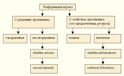 3.Третий способ классификации игр – посвойствам платежной функции. Одним из важных типов платежных функций является платежная функция вигре с нулевой суммой,когда общая сумма выигрышей игроков равна нулю (игры с нулевой суммой называют также антагонистическими). В игре двух участников с нулевой суммой выигрыш одного из партнеров равен проигрышу другого, т.е. налицо прямой конфликт между игроками. Прямой противоположностью играм такого типа являютсяигрыдвух участников с постоянной разностью, в которых игроки и выигрывают, и проигрывают одновременно, так как им выгодно действовать сообща.В общей игре с ненулевой суммой имеют место, как правило, и конфликты, и согласованные действия игроков.