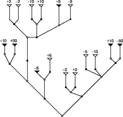 Существует ряд способов описания и анализа конкретных игр. Один из приемов описания игры состоит в том, что указывает, какие ходы могут делать игроки, какой информацией во время игры они располагают, какие варианты можно выбирать и какими могут быть предельные размеры платежей в конце игры. Игра, описанная таким образом, называется игрой вразвернутой (экстенсивной) форме, а само описание составляется в видедерева игры. Например: