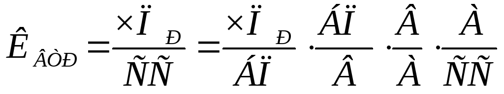 Например: Фондоотдача определяется отношением валовой (BП) или товарной продукции (ТП) к среднегодовой стоимости основных производственных фондов (ОПФ):