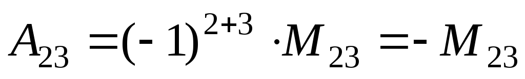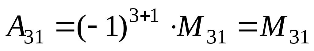 т.е. алгебраическое дополнение совпадает с минором, когда сумма номеров строки и столбца (i+j) – четное число, и отличатся от минора знаком, когда (i+j) – нечетное число.