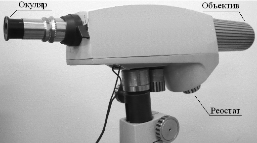 В лабораторной установке (рис. 2) для определения температуры нити лампы накаливания используется пирометр ЛОП-72 (рис. 3).