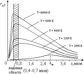 В нагретых телах часть внутренней энергии вещества превращается в энергию электромагнитного излучения, которая излучается в широком диапазоне частот (длин волн). Это излучение называют тепловым или температурным излучением. Все раскаленные твердые и жидкие тела имеют сплошной непрерывный спектр излучения. Распределение энергии в таком спектре зависит от температуры излучающего тела.