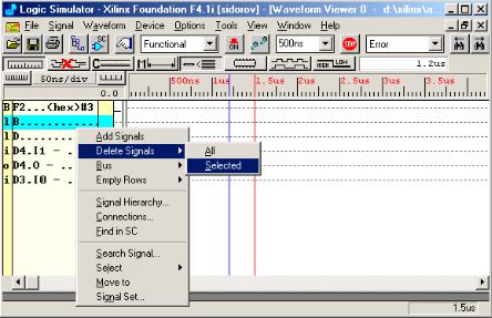 шемся меню выберите Delete Signal и затем щелкните Selected (рис. 71). Имя сигнала будет удалено.