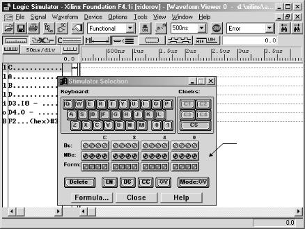 вокне задания входных воздействий (см. рис. 72). В окне моделирования имя входа будет помечено символом B с указанием номера выбранного разряда счетчика, например, B0 — младший разряд счетчика, B3 — четвертый разряд;