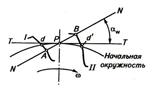 (рисунок 1), а в конце зацепления – положение II. При этом АВ – рабочая линия зацепления.