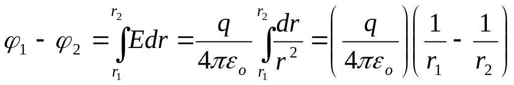 Якщо r1=R , а r2= , то потенціал зарядженої сфери = q/ 4п0R ;