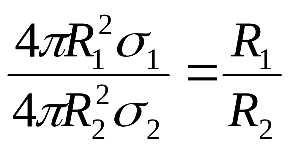 Визначимо заряди на сферах через їх поверхневу густину :