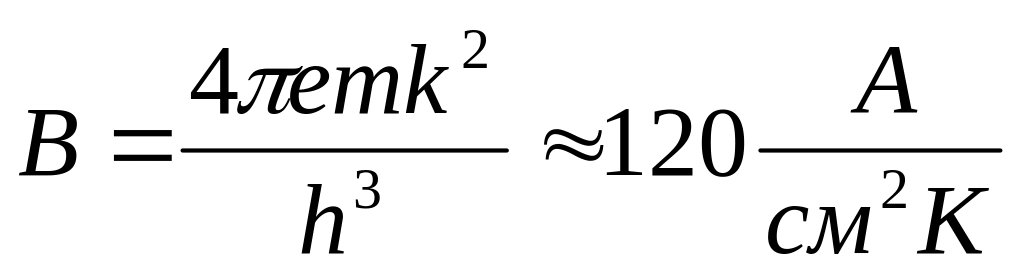 За квантовою теорією густина струму Насичення визначається формулою Річардсона- Дешмена: