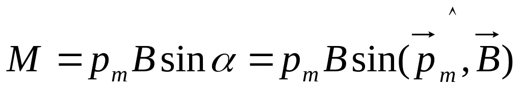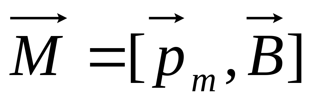 Вектор обертального моменту , який діє на рамку зі струмом у магнітному полі, дорівнює векторному добутку магнітного моменту рамки на магнітну індукцію зовнішнього поля: