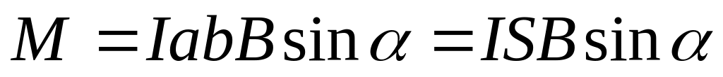 де S = ab – площа рамки, IS = pm – числове значення вектора магнітного моменту рамки зі струмом. Тоді