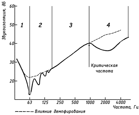 3. перегородка сильно задемпфирована либо вследствие внутреннего трения в материале перегородки, либо в результате нанесения на ее поверхность слоя поглощающего материала.