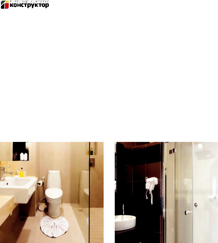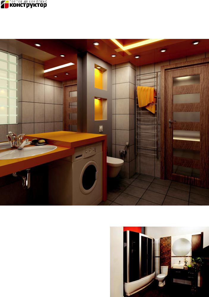 нат. Как правило, тут мы имеем не только боль- шую площадь, но и больше задач. К стандартно- му набору для гостевого санузла — душевая, уни- таз, раковина — добавляется еще ванна и, иногда, биде. Хорошо, когда у вас все прекрасно влезает, и не нужно ничего выдумывать. А если у вас мало места, есть маленькие хитрости. Например, суще- ствуют ванны, совмещенные с душевыми каби- нами. Есть, конечно, и совсем облегченные вари- анты.