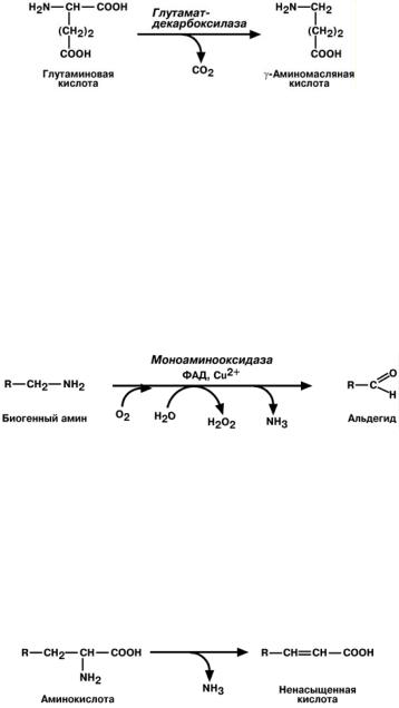 Реакции инактивация биогенных аминов протекают с образованием свободного аммиака и ФАДН2. Катализирует реакцию моноаминоксидаза, она обнаружена во многих тканях, но наиболее активна в печени, желудке, почках, кишечнике, нервной ткани.