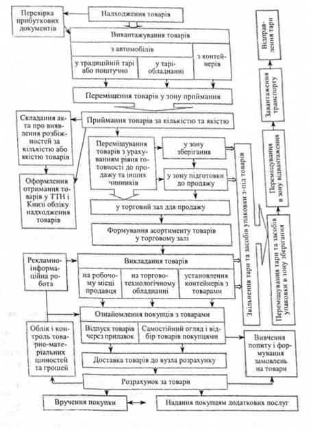 Рис. 14.2. Схема основних операцій торгово-технологічного процесу в магазині