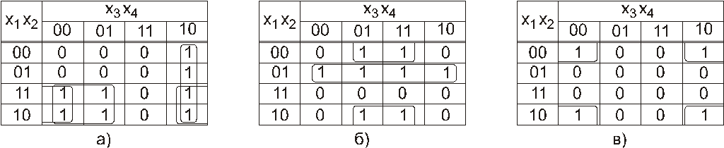 Так, для рис. 46б f(х1х2х3х4) получим имплиценты: