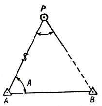Засічка вважається виконаною правильно, якщо розбіжність у координатах точкиР, яка отримана з пунктівАіВ, не перевищує 20 м. За кінцевий результат беруть середнє значення координат, яке округлено до 1 м.